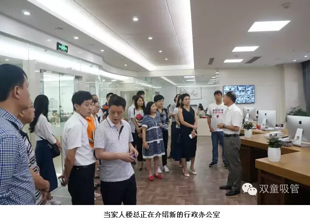 一到“雙童”,大家就參觀起了行政辦公室和吸管樣品房,當(dāng)家人樓總介紹了一系列他們從沒見過的創(chuàng)新吸管,讓他們驚訝的是,原來一根小小的吸管也可以有這么多的功能可以開發(fā)。
