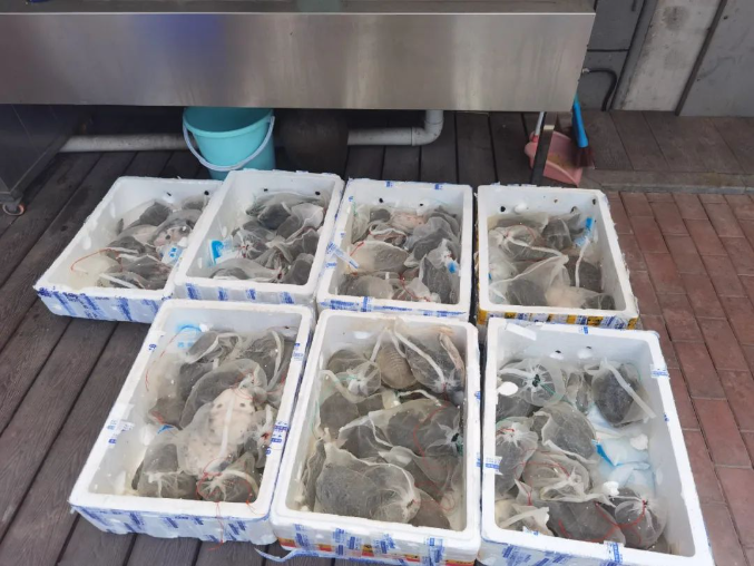 抓住他們真是費了不少勁!在經(jīng)過后勤小姐姐們的細心消毒后,終于可以投放啦,看著一袋又一袋塑料網(wǎng)被解開,小甲魚們紛紛扎入池塘當中。吸管妞已經(jīng)默默期盼著來年收獲一大堆甲魚蛋啦~~