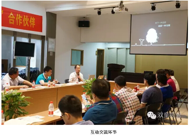 參觀后,大家終于有機(jī)會坐下來,與兩位當(dāng)家人進(jìn)行深入交流,互動提問。既然都是市政府質(zhì)量獎孵化企業(yè),那么大家的問題也基本上都圍繞著企業(yè)的管理規(guī)范方面???,剛坐下不久,就有幾位企業(yè)管理精英向當(dāng)家人樓總提了關(guān)于卓越績效管理的問題。