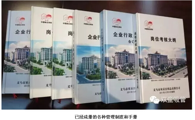 當(dāng)家人樓總答:管理要依靠制度規(guī)范支撐。對此,公司組織人員編寫了兩百多頁的崗位考核大綱,從組裝、包裝、銷售甚至到廠里的消防隊,每個崗位都有著不下5條的考核條例,連掃帚如何擺放都有明確的規(guī)定。而行政人員也會有《行政管理大綱》,不同崗位的人會拿到不同的版本進(jìn)行學(xué)習(xí)培訓(xùn)。所以外界經(jīng)常戲稱“雙童”260多頁文件管一把掃帚。