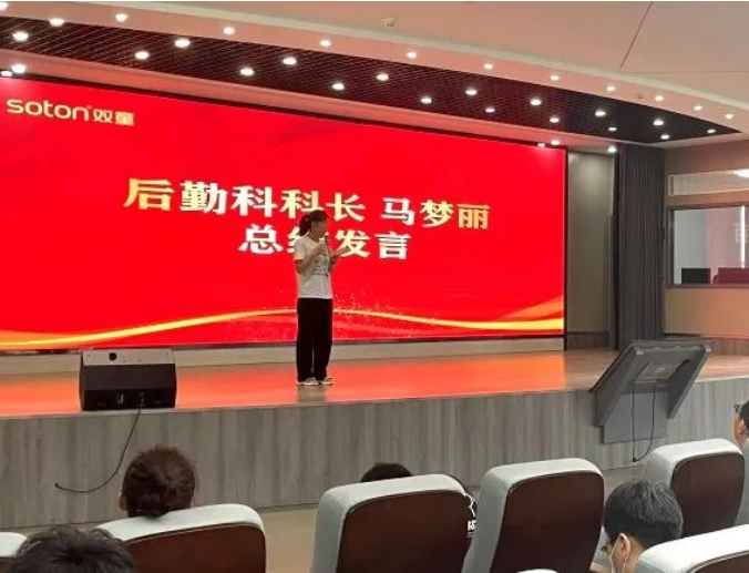 緊接著后勤科科長(zhǎng)馬夢(mèng)麗也對(duì)后勤、衛(wèi)生等工作進(jìn)行宣講,她強(qiáng)調(diào)大家要重視公共區(qū)域的衛(wèi)生情況,并提醒暑期員工家屬入住需要遵守廠區(qū)的規(guī)章制度,做好垃圾分類,共同維護(hù)公司環(huán)境。