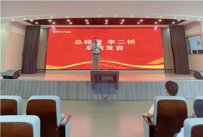 在大會(huì)最后,“雙童”總經(jīng)理李二橋?qū)Φ诙径裙ぷ髯骺偨Y(jié)發(fā)言。在發(fā)言中,他向在場(chǎng)的每一位員工表達(dá)了承諾:2022年上半年的國(guó)內(nèi)經(jīng)濟(jì)發(fā)展形勢(shì)不大樂(lè)觀,但即便今年的經(jīng)濟(jì)大環(huán)境再不好,雙童也會(huì)盡全力保證員工工資漲幅只會(huì)為正、絕不減薪!總經(jīng)理李二橋在員工大會(huì)上發(fā)言