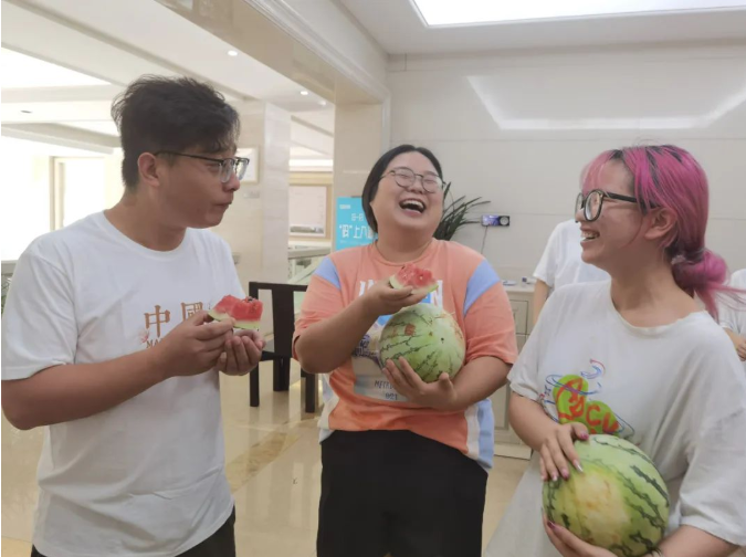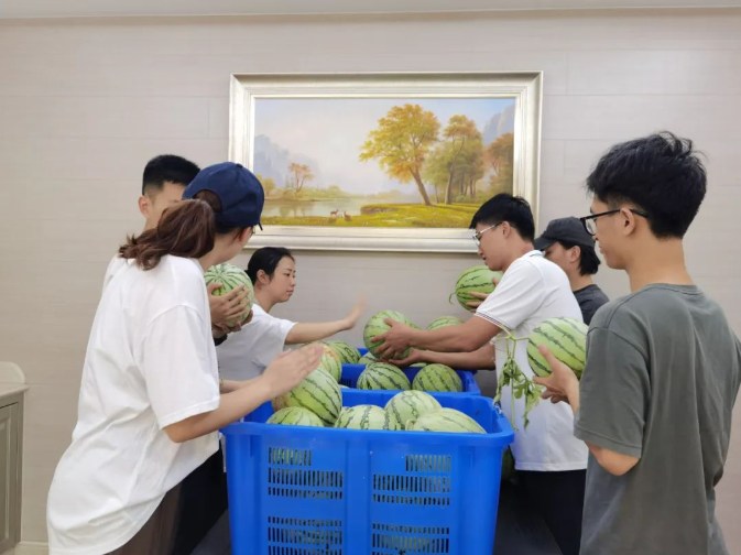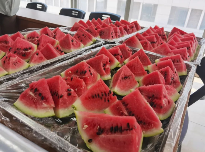 這些西瓜在園丁叔叔的辛勤栽培下,個(gè)個(gè)都長得是又大又紅。炎炎夏日,來一口清爽的大西瓜,簡直是夏天最好的儀式!給員工們送上爽口的水果,讓大家不僅吃著甜,更是心里甜!