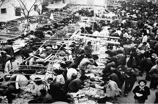人們提著籃子上街售賣商品