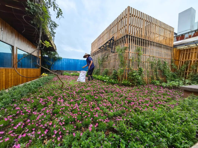 “雙童”的廠區(qū)有近40畝土地,綠化面積占比最大的就要數(shù)“一號樹”景觀、空中花園和空中菜園了。別看綠化面積很大,對于園丁叔叔們來說可全都不在話下!
