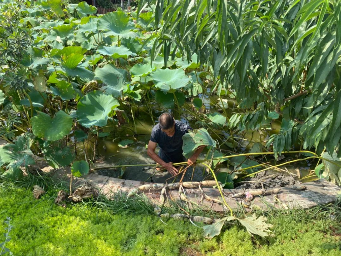 ▲ 挖藕可真是個(gè)體力活,沒(méi)一會(huì)園丁就大汗淋漓