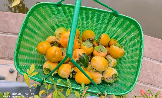 過不了幾天,柿子就熟透了,瞧!這滿滿一筐紅彤彤的果實多誘人呀!