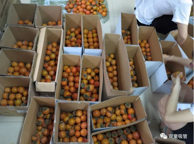 在經(jīng)歷過漫長的等待后,“雙童”人迫不及待的想要嘗上一口新鮮的柿子,拿上剪刀和籃子,采摘開始!