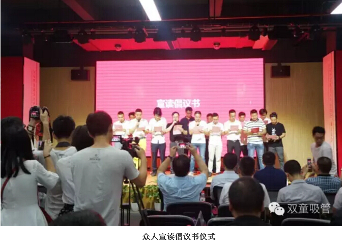主持人在簡單介紹之后,本次會(huì)議也就拉開了帷幕。義烏市民政局的領(lǐng)導(dǎo)宣布了協(xié)會(huì)的第一屆理事會(huì)會(huì)長、副會(huì)長、監(jiān)事長的選舉結(jié)果,義烏尤品文化傳播公司的李丹被推選為了協(xié)會(huì)的首屆會(huì)長。獲得該項(xiàng)榮譽(yù)的精英們上臺(tái)宣讀了倡議書,并舉行了授牌儀式。