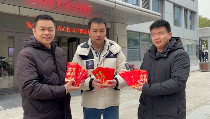 瞧,“雙童人”們都笑容滿面,領(lǐng)到的既是紅包,也是福包!在新的一年里,大家一分耕耘一分收獲,對于兔年新目標(biāo),大家都有信心有激情,斗志滿滿!
