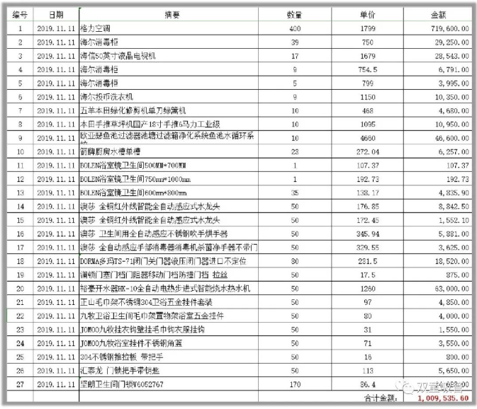 在后續(xù)調(diào)查跟進(jìn)的過程中,吸管妞發(fā)現(xiàn)這五臺(tái)洗衣機(jī),也算是“雙童”的“老員工”啦!2019年的雙十一,“雙童”董事長樓仲平聯(lián)合團(tuán)隊(duì)一起購買了400臺(tái)格力空調(diào)、39臺(tái)海爾消毒柜、80臺(tái)進(jìn)口閉門器、門鎖170把、9臺(tái)投幣洗衣機(jī)、17臺(tái)各型號(hào)彩電、9臺(tái)洗衣機(jī)..... 為二期廠房增添設(shè)備,所有設(shè)備都采用高品質(zhì)的品牌,直接將一百多萬貢獻(xiàn)給了天貓!