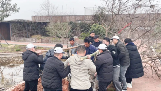 在空中花園里,大家嘿呦嘿呦的正在賣力地栽樹。俗話說得好,團結就是力量,大家一起培土、踩實、澆水,每道工序都一絲不茍,每個流程認真細致!