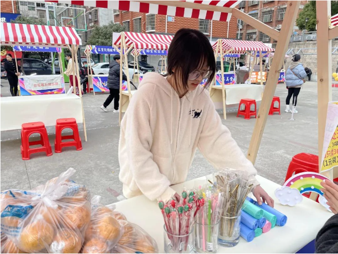,吸管妞可是絲毫不敢大意,做足了功課。集市開始前,吸管妞就和“雙童”各個創(chuàng)業(yè)體反復(fù)商議確定售賣的產(chǎn)品,大家分工明確,團(tuán)結(jié)協(xié)作,干勁十足,呈現(xiàn)出一派熱火朝天的景象。