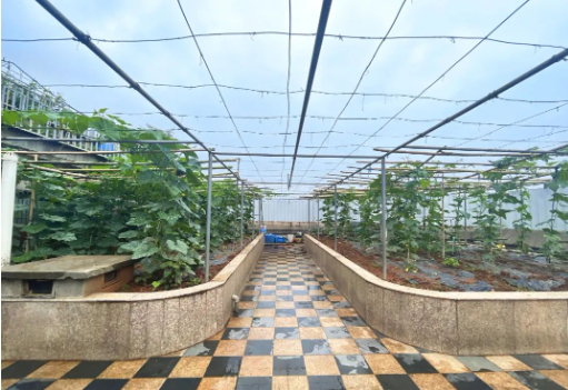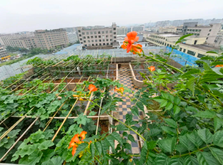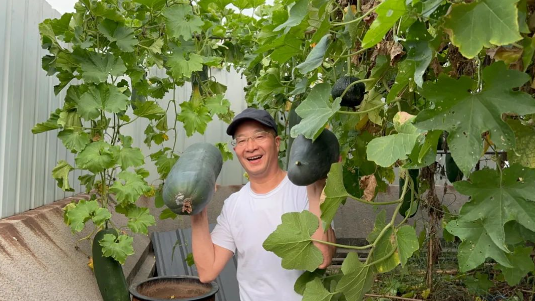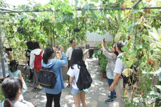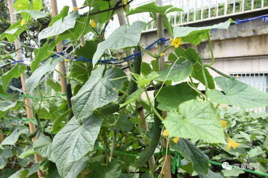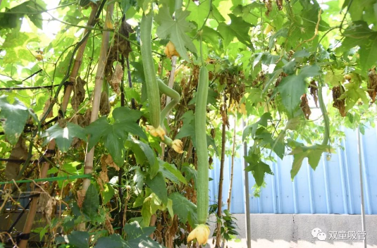 這樣的場(chǎng)景也總會(huì)吸引來(lái)“雙童”參觀的客人及媒體朋友們駐足觀賞,拍照留念,贊嘆屋頂菜園的瓜果!