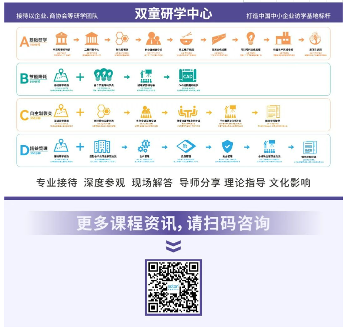 “雙童”第十創(chuàng)業(yè)體——雙童研學(xué)中心,于2023年3月成立。一直以來,“雙童”獨(dú)特的企業(yè)經(jīng)營理念,吸引了眾多社會關(guān)注,每年都有大量的社會組織和高校團(tuán)體等前來調(diào)研參觀。為更好地賦能,組建了雙童研學(xué)中心,系統(tǒng)化為更多對雙童模式感興趣的人們提供場景學(xué)習(xí)。