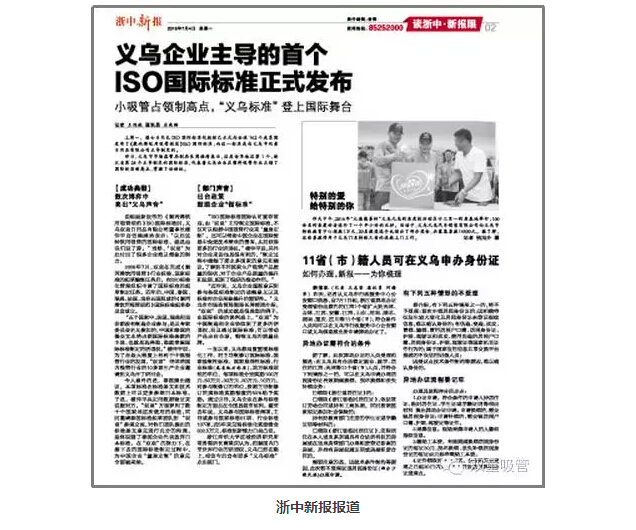 歷時九年,輾轉(zhuǎn)六國,由“雙童”主導(dǎo)并起草的《聚丙烯飲用吸管規(guī)范》ISO國際標(biāo)準(zhǔn)終于在瑞士日內(nèi)瓦的ISO國際標(biāo)準(zhǔn)化組織向全球162個國家和地區(qū)正式發(fā)布!消息一出,引起了各大新聞媒體的關(guān)注。這不,浙中新報對此進行了大版面報道,下面妞就帶大家來看看吧!