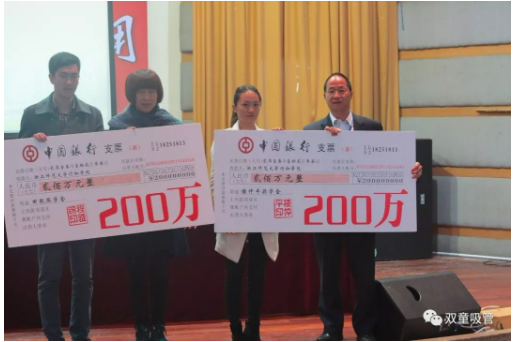 在利國利民的教育事業(yè)上,“雙童”也多次出現(xiàn)在助學項目中。早在2013年,當家人樓仲平就已經(jīng)以個人名義與浙師大簽訂了協(xié)議,成立了“樓仲平基金會”,設(shè)立了本金為200萬元人民幣的“樓仲平獎學金”,每年獎勵在學科競賽、學術(shù)科研、專業(yè)技能、創(chuàng)新創(chuàng)業(yè)、學生工作等方面的優(yōu)秀學子,幫助學校有需要的學生,鼓勵他們更好地學習和完成學業(yè)。