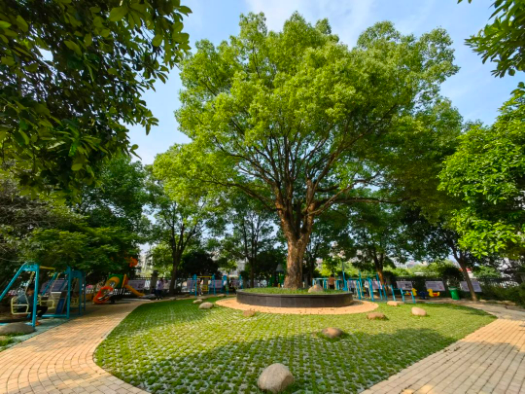 如今的“雙童1號樹”早已是枝繁葉茂,站在樹下,已經(jīng)很難再拍出它全部的樣貌了!當(dāng)家人樓仲平還在這里建設(shè)了一個(gè)“1號樹小公園”,為大家提供了工作之余休閑放松的好去處。