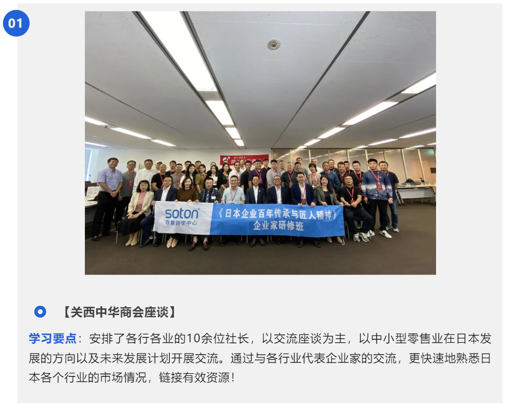 整個6天5晚的企業(yè)家研修班過程中,既有日本知名企業(yè)參訪,也有休閑放松的景區(qū)游覽。