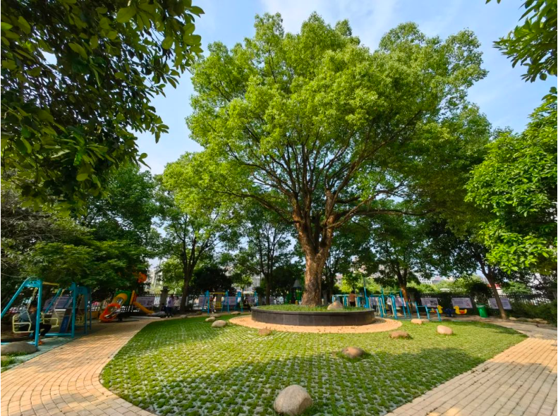 如今的“雙童1號樹”早已是枝繁葉茂,站在樹下,已經(jīng)很難再拍出它全部的樣貌了!當家人樓仲平還在這里建設了一個“1號樹小公園”,為大家提供了工作之余休閑放松的好去處。