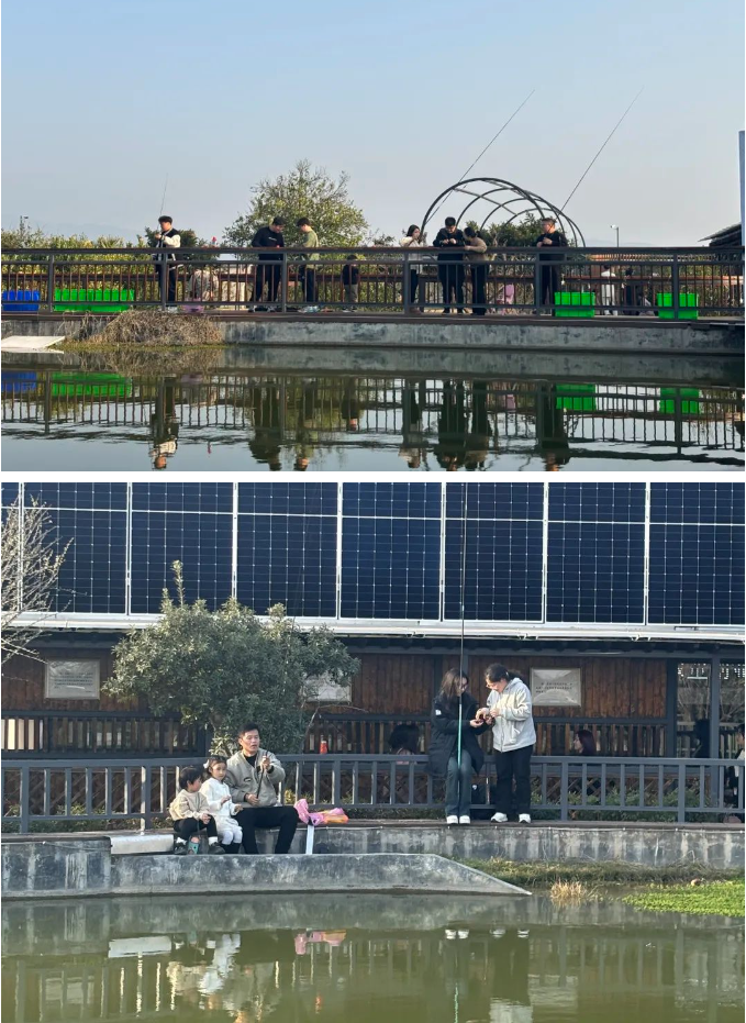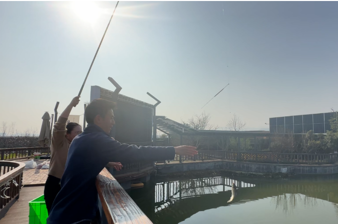 二十度的空氣里已經(jīng)褪去了冬的寒意,因又恰逢周末,所以在空中花園的各個角落都聽得到歡聲笑語!這不,圍著300多平的空中魚塘,就已經(jīng)坐著了好幾撥兒垂釣的人,三五成群,是朋友,是家人,是父親與孩子……