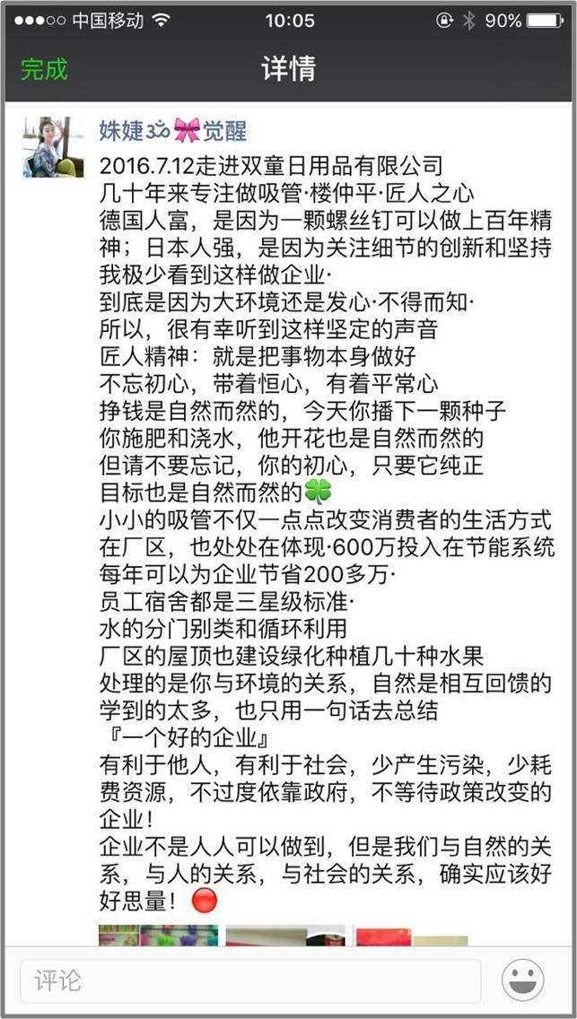 樓總談到自己時說:“一輩子精力有限,把一根吸管真正做好就行了。”雙童強調(diào)以小博大,“博”不是拼搏的搏,而是博大的博,就是要以博大的胸懷把一件事情做好!