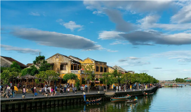 會安古鎮(zhèn),是15世紀(jì)到19世紀(jì)東南亞保存完好的傳統(tǒng)貿(mào)易港,其建筑和街道樣式,受到土洋結(jié)合風(fēng)格的影響,這種風(fēng)格也體現(xiàn)在整個遺址的建筑中。