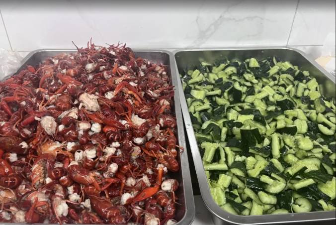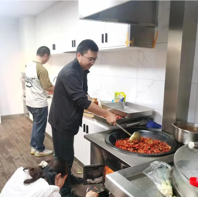 等到300斤小龍蝦被運到空中花園時,所有的小伙伴都已經(jīng)準(zhǔn)備就緒了,有專門去頭取蝦線的小分隊,小龍蝦“洗刷刷”小分隊、傳送小分隊和后廚配菜、掌勺小分隊,大家分工明確,同步進(jìn)行,配合相當(dāng)完美,就像平時在工作中一樣有默契,每一個步驟都不假人手,親自完成,滿滿參與感!
