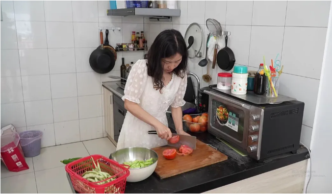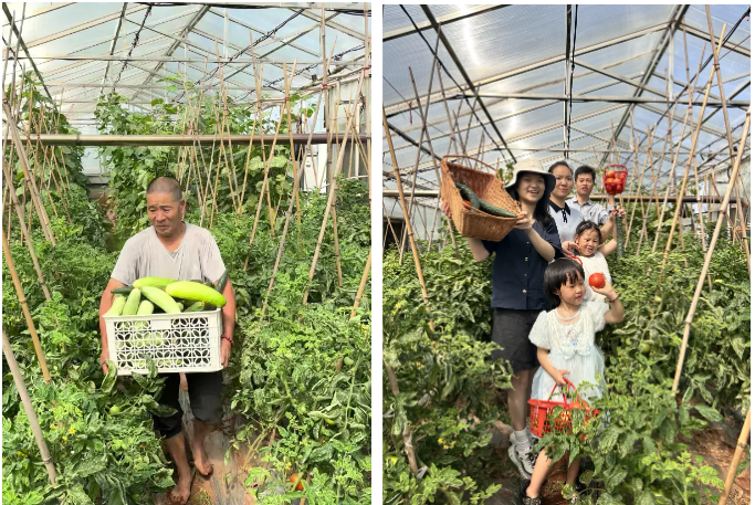 將剛剛采摘下來的黃瓜、西紅柿、豆角,清洗、去皮切塊、翻炒,不一會,一盤接一盤超新鮮的炒時蔬就被端上餐桌了,看著相當美味!而且,這些蔬菜全都是純天然無公害的,吃起來非常安心,蔬菜本身的味道也更加濃郁!