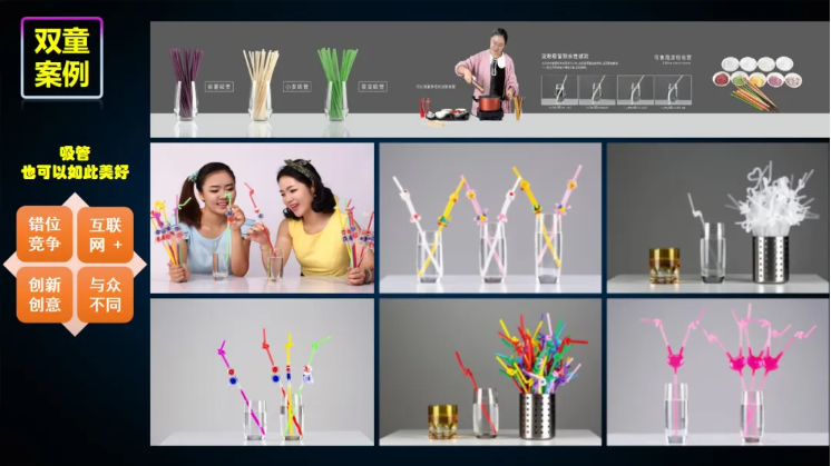 同時,“雙童”面對超大客戶高度集中造成利潤率日趨下降的困境,“雙童”更是運(yùn)用國際站優(yōu)勢開啟了備受社會各界關(guān)注的“小客戶原則”。并利用互聯(lián)網(wǎng)+與創(chuàng)意相結(jié)合,打破“吸管只能用來喝水”的隱含假設(shè),研發(fā)高附加值的吸管,錯位競爭,徹底拉開了與同行的差距,持續(xù)20多年成為吸管行業(yè)NO.1。