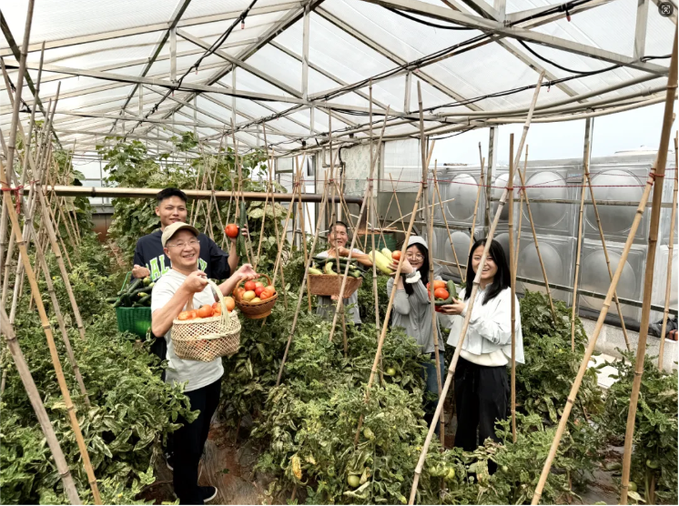 一走進(jìn)菜園,當(dāng)家人樓總就帶著小伙們開(kāi)啟“戰(zhàn)斗”模式,毫不夸張,只一會(huì)兒功夫,黃瓜、番茄被裝滿了一筐又一筐,這種在工廠里也能貼近自然的農(nóng)家生活,真的超幸福!