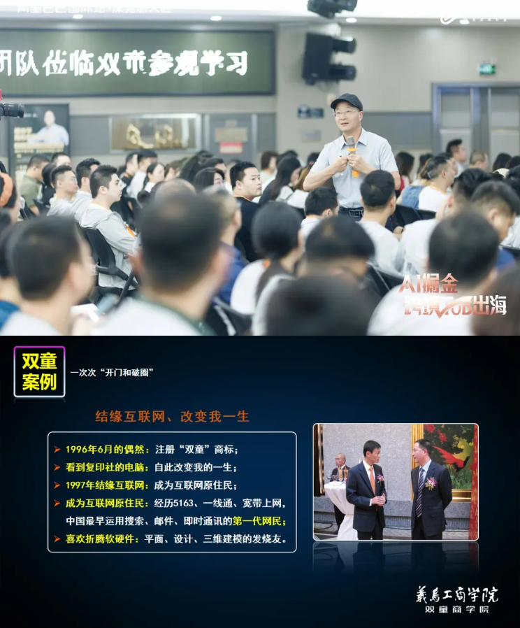 早在1996年注冊“雙童”商標時,自己就開始學習電腦應(yīng)用,成為中國互聯(lián)網(wǎng)的原住民。并在數(shù)字化工具加持下,為“雙童”率先打開了國際市場,短短幾年時間,超越同行,奠定了成為行業(yè)冠軍的基礎(chǔ)。