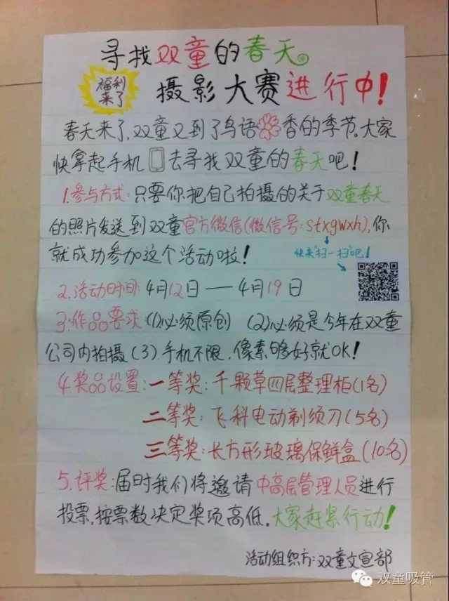 這不,“尋找雙童的春天”攝影大賽已經(jīng)連續(xù)舉辦了三年!一到春天,社員們就拿起手機(jī)拍攝美麗的“雙童”,這都成為了“雙童”的傳統(tǒng)了呢!