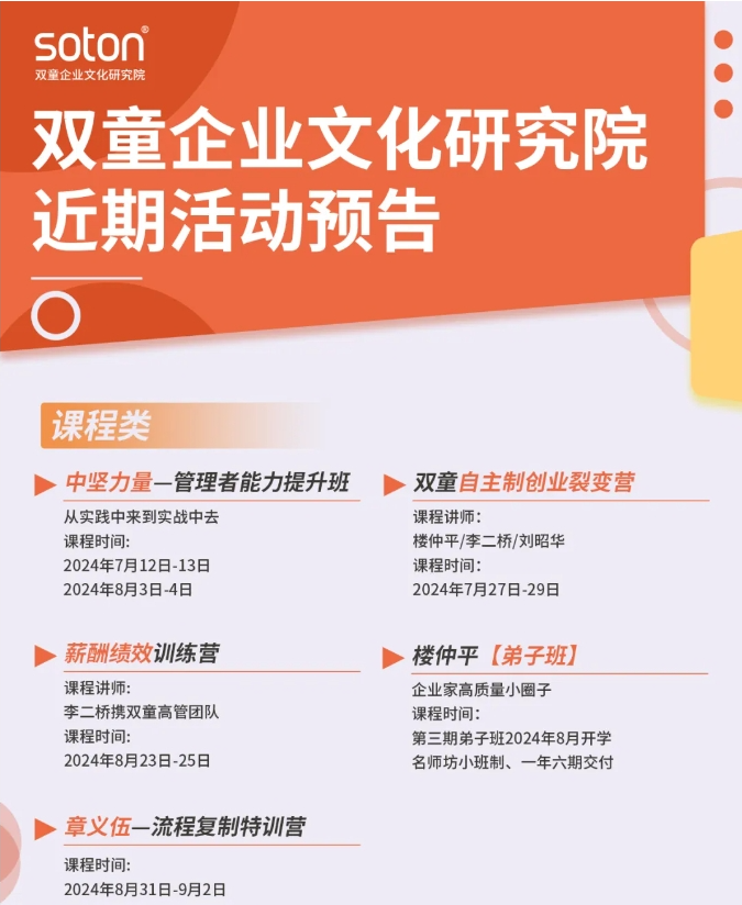 為了助力更多中小企業(yè)也能運(yùn)用這套機(jī)制實(shí)現(xiàn)快速增長(zhǎng),早在2022年,雙童商學(xué)院就針對(duì)該機(jī)制打磨成《自主制創(chuàng)業(yè)裂變營(yíng)》課程。
