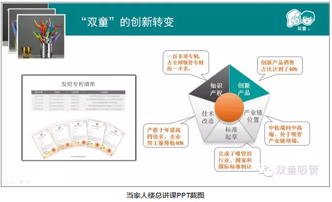 創(chuàng)意改變生活!在我們“雙童”的吸管博物館里有著各種各樣的創(chuàng)新吸管。愛心吸管、哈哈吸管、風(fēng)車吸管...... 一根吸管身上有著四五個專利,是不是聽著就覺得不可思議?吸管在外人看來,薄薄的管壁,兩頭中空,簡單得不能再簡單,毫無技術(shù)含量可言。然而“雙童”卻擁有了100多項專利,掌握了全球吸管行業(yè)近2/3的專利,并且主導(dǎo)著全球吸管行業(yè)的行業(yè)標(biāo)準(zhǔn)制定。