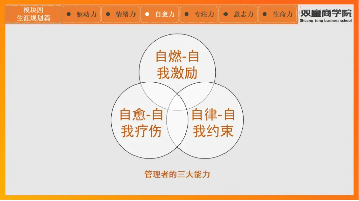 從文宣員到成長為創(chuàng)業(yè)體總經(jīng)理,再到帶領(lǐng)全體雙童商學(xué)院的小伙伴一步步走得更好,都離不開強(qiáng)大的驅(qū)動力。同時,面對成長中的挫折,她也向大家展示了掌控情緒力、自愈力、專注力、意志力的重要性!
