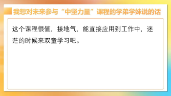 在完成了思維有高度、帶人有溫度、做事有力度三個模塊課程學(xué)習(xí)后,【中堅(jiān)力量】將最后的落腳點(diǎn)放在了“成長有速度”!