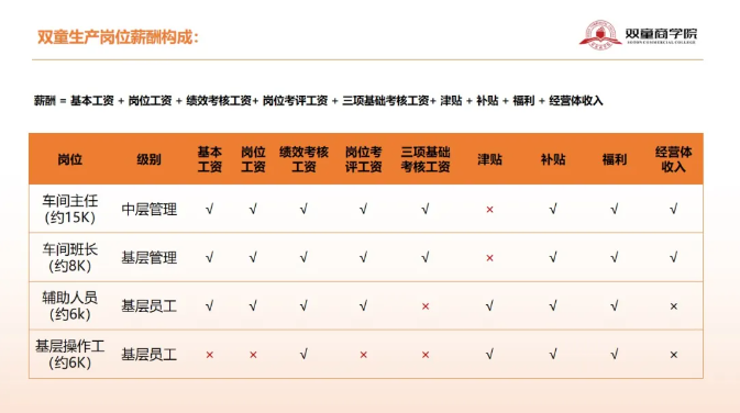 對(duì)員工來(lái)說(shuō),尤其是優(yōu)秀員工,工資肯定多多益善,才愿意留下來(lái);但是對(duì)于企業(yè)來(lái)講,錢(qián)要花在刀刃上,每一分錢(qián)都要產(chǎn)生價(jià)值,并不是說(shuō)給直接給高薪酬,而是給合理的薪酬。因此,企業(yè)需要一套有效的薪酬方案,讓企業(yè)和員工的利益都達(dá)到最大化。在“雙童”,是沒(méi)有“死工資”的。即使是車(chē)間一線(xiàn)員工的薪資,也有非常完善的薪酬績(jī)效體系,從而有效解決了很多制造業(yè)工廠(chǎng)所面臨的“員工計(jì)時(shí)工資不出量,計(jì)件工資不保質(zhì)”的難題!