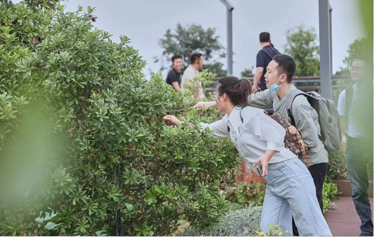 在“雙童”的屋頂花園,種植了二十多品種200多棵果樹(shù),年產(chǎn)近萬(wàn)斤的水果!光琵琶、桃、梨、李、杏、橘、柚就有120棵,楊梅樹(shù)甚至都可以掛果兩千斤,重點(diǎn)是:所有水果全部與員工分享,一個(gè)不賣。
