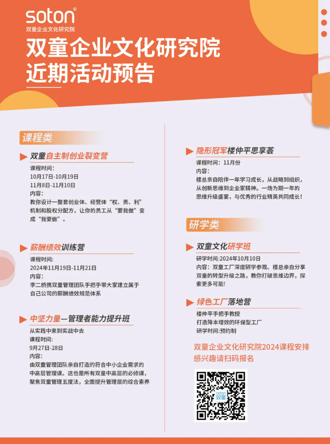 祝愿雙童繼續(xù)發(fā)揚(yáng)光大企業(yè)家精神,創(chuàng)新不止、再攀高峰。祝賀雙童企業(yè)成立30周年。