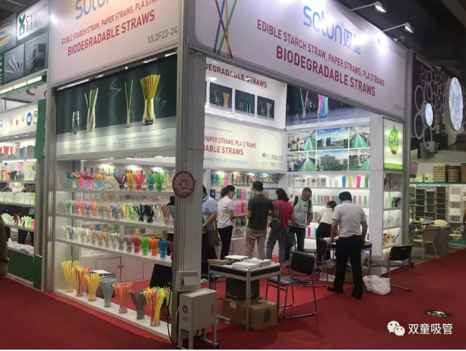 雙童日用品本次參展以推廣可降解產(chǎn)品為主:PLA吸管、紙吸管、可降解膜袋類、創(chuàng)新吸管、塑料口杯、PE手套、垃圾袋、塑料吸管、不銹鋼吸管、玻璃吸管、竹子吸管等。