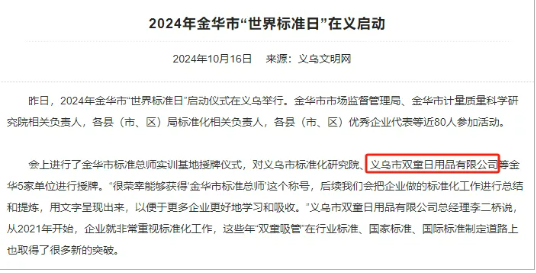 未來,雙童將進一步加強標準創(chuàng)新工作,讓自己始終站在更高舞臺上審視產業(yè)發(fā)展的未來變化,同時也用自己的經驗助力更多企業(yè)的標準化制定工作,為提升全社會標準化意識、將義烏建設成為各類行業(yè)標準資源聚集高地貢獻自己的力量!