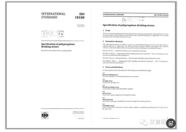 2016年 | 《聚丙烯飲用吸管規(guī)范》ISO國際標準 |