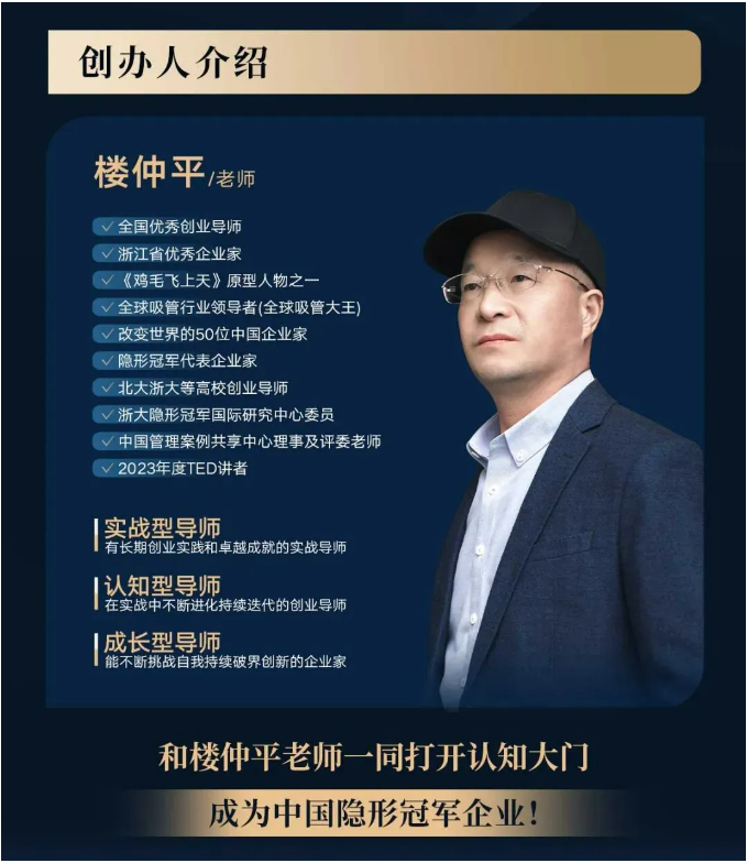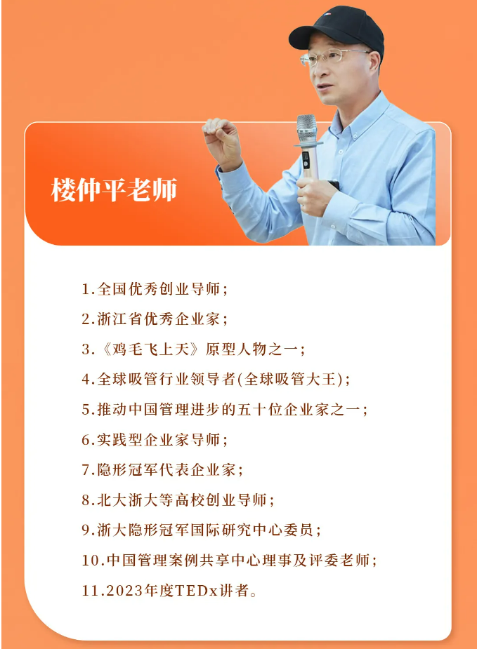 如果你是創(chuàng)業(yè)者、學習者、思想者,希望在經(jīng)營領(lǐng)域有更深的思考和洞察,那么《隱形冠軍樓仲平思享薈》就是為你量身定制,今年最后一期招生,一班只招40位同學,即將開課,名額所剩不多,抓緊機會哦!