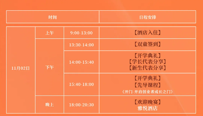 1)開學典禮環(huán)節(jié),我們會為同學們打造一個安全、放心、松弛的環(huán)境,讓來自天南海北的同學們快速融合,同時課研組還邀請到了前兩期的學長來到現(xiàn)場,為學弟學妹們分享學習心得和經(jīng)驗。