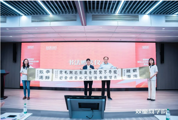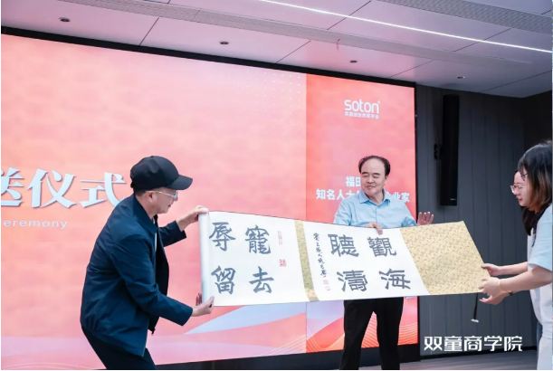 在鄉(xiāng)賢交流中,福田街道與雙童還進(jìn)行了書(shū)法佳作的贈(zèng)送儀式。