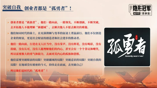也正是因?yàn)楣陋?dú),創(chuàng)業(yè)者們才能深度思考,才能擺脫群體干擾保持思想獨(dú)立,去創(chuàng)造出獨(dú)特的“差異化經(jīng)營(yíng)”。所以,樓老師也在課上鼓勵(lì)弟子班的同學(xué)們:創(chuàng)業(yè)者要學(xué)會(huì)享受孤獨(dú)!