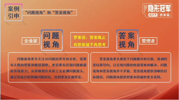所以,比“事實(shí)”更重要的,是對(duì)事實(shí)的認(rèn)知和運(yùn)用抽象邏輯思考的方式。創(chuàng)業(yè)者在經(jīng)營(yíng)企業(yè)的過程中,要學(xué)會(huì)用“問題視角”去思考分析,用審慎的態(tài)度去觀察、審視、質(zhì)疑、提問、追問后做出明智的判斷。