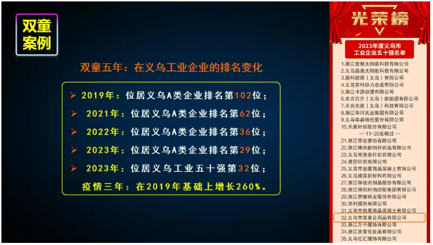目前,雙童創(chuàng)業(yè)共享平臺通過裂變機制已孵化了16家創(chuàng)業(yè)體,形成了以吸管制造業(yè)為基礎,以國際貿易和創(chuàng)業(yè)教育兩大板塊為融合的新的產業(yè)模式,做到了輕重結合、虛擬結合,增強了企業(yè)的活力和反脆弱性,同時實現(xiàn)了企業(yè)和員工的共同富裕!