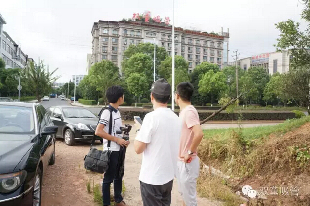 周一的清晨,當(dāng)家人樓總早早地就來到了公司,而在公司門口,還停著一輛大吊機(jī)!用吸管君的話說,這是要搞事情啊!果然,不一會(huì)兒,幾個(gè)拿著專業(yè)攝影機(jī)的攝影師也來到了公司,大家伙一起來到了“雙童”的斜對(duì)面,當(dāng)家人說,我們要隔著北苑路這條大馬路,借助近50米高的大吊機(jī),拍攝“雙童”廠房全景!